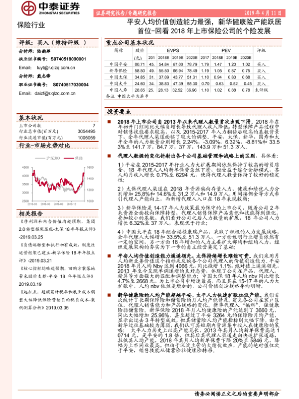 【中泰证券】【20190411】回看2018年上市保险公司的个险发展-9页 行业研究