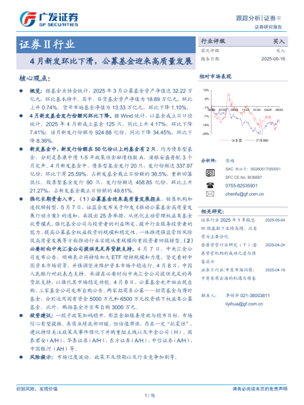 【广发证券】【20250516】证券Ⅱ行业:4月新发环比下滑,公募基金迎来高质量发展-15页 证券期货研究报告