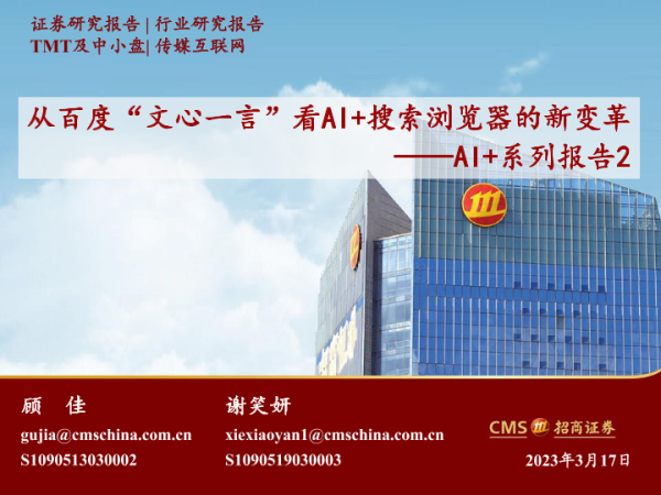【海通证券】【20230317】从百度“文心一言”看AI+搜索浏览器的新变革-22页 行业研究
