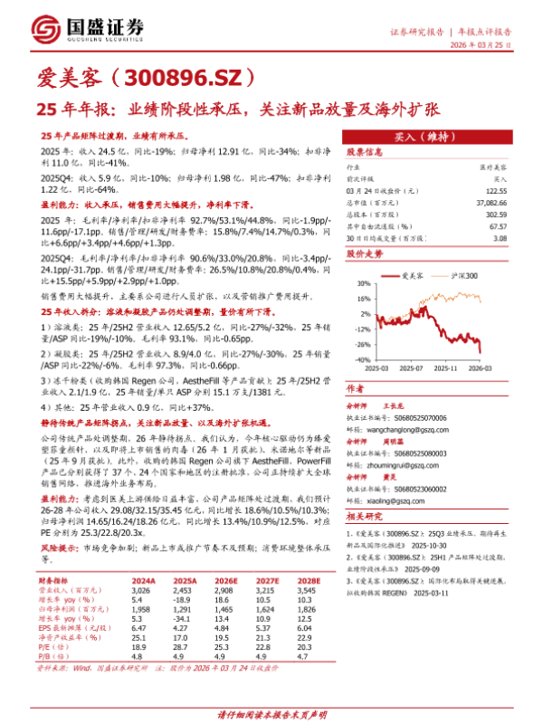 【国盛证券】【202603】25年年报:业绩阶段性承压,关注新品放量及海外扩张-3页 证券期货研究报告