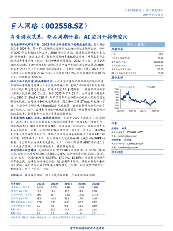 【国盛证券】【20240408】巨人网络-002558.SZ-存量游戏筑基,新品周期开启,AI应用开拓新空间-26页 行业研究