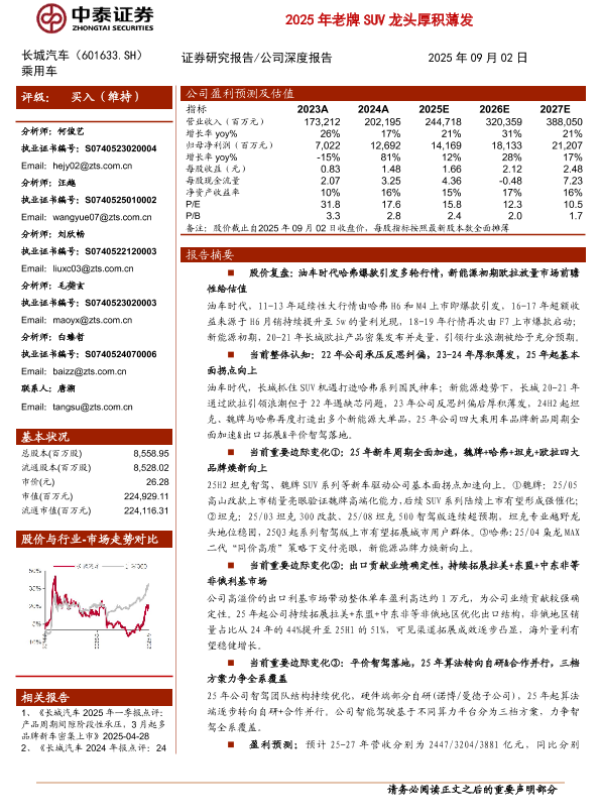 【中泰证券】【202509】2025年老牌 SUV龙头厚积薄发-33页 证券期货研究报告