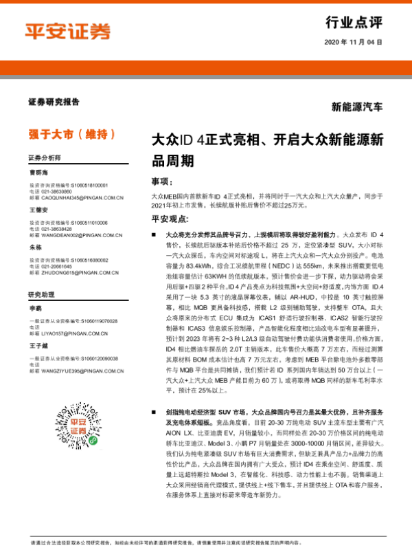 【平安证券】【20201104】新能源汽车:大众ID4正式亮相、开启大众新能源新品周期-5页 行业研究