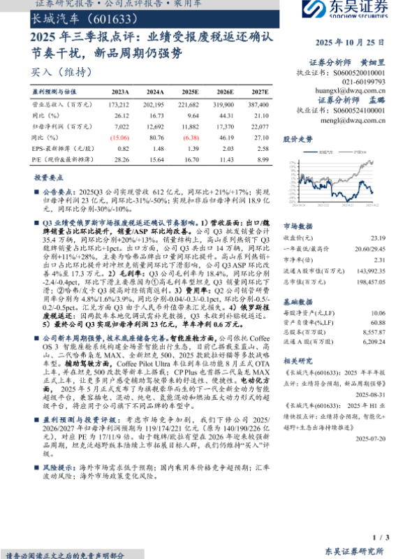 【东吴证券】【202510】2025年三季报点评:业绩受报废税返还确认节奏干扰,新品周期仍强势-3页 证券期货研究报告