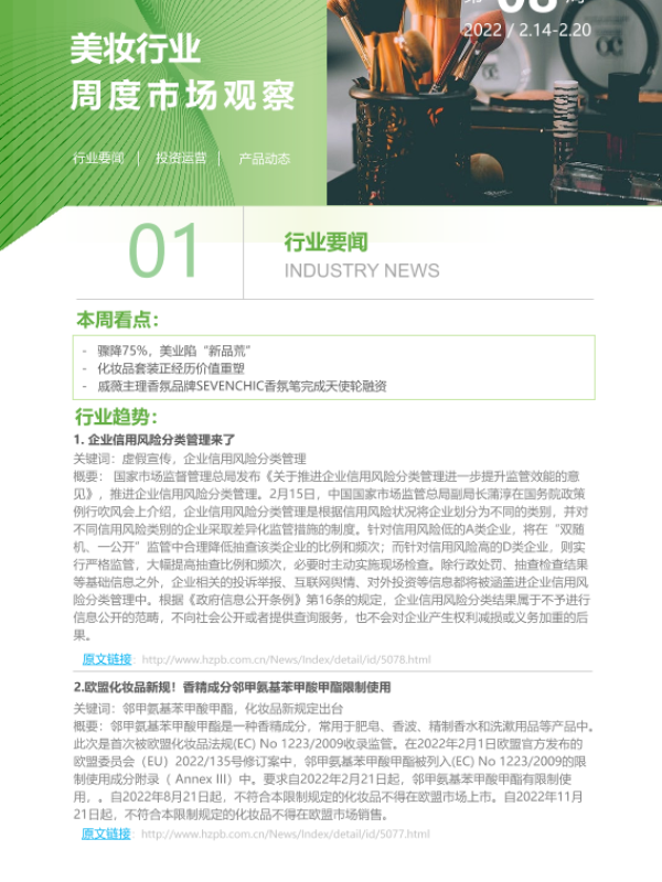 【艾瑞咨询】【20220220】2022年第8周:美妆行业周度市场观察-7页 市场调研