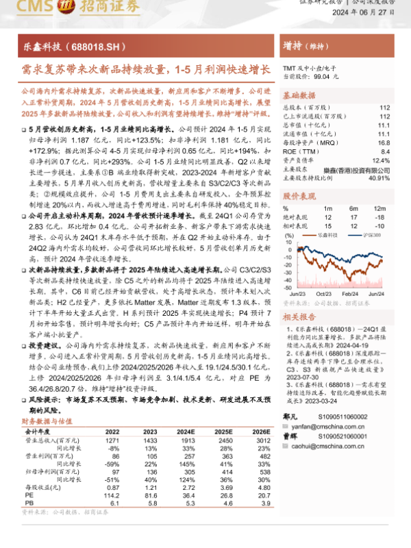 【海通证券】【20240627】需求复苏带来次新品持续放量,1-5月利润快速增长-13页 行业研究
