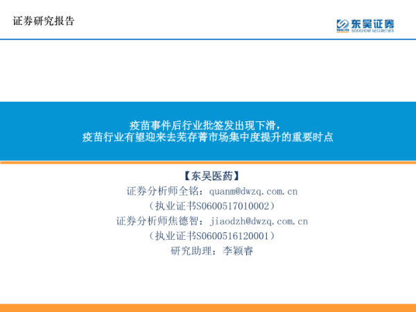 【东吴证券】【20190813】疫苗事件后行业批签发出现下滑,疫苗行业有望迎来去芜存菁市场集中度提升的重要时点-25页 行业研究