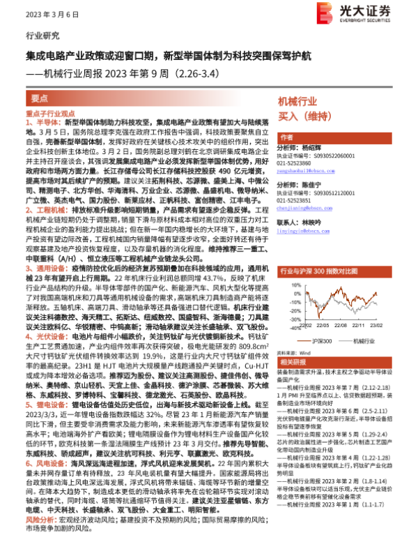 【光大证券】【20230306】机械行业周报2023年第9周:集成电路产业政策或迎窗口期,新型举国体制为科技突围保驾护航-21页 行业研究