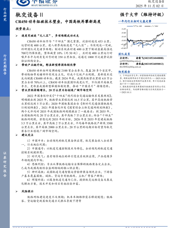【华福证券】【202511】CR450动车组破技术壁垒,中国高铁再攀新高度-2页 证券期货研究报告