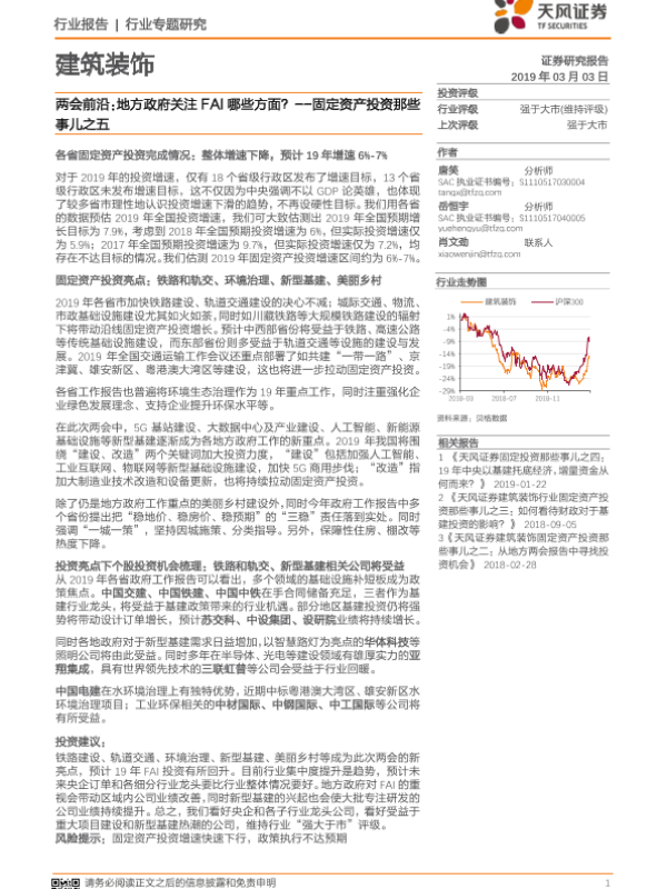 【天风证券】【20190303】建筑装饰行业报告两会前沿:地方政府关注FAI哪些方面?-16页 行业研究