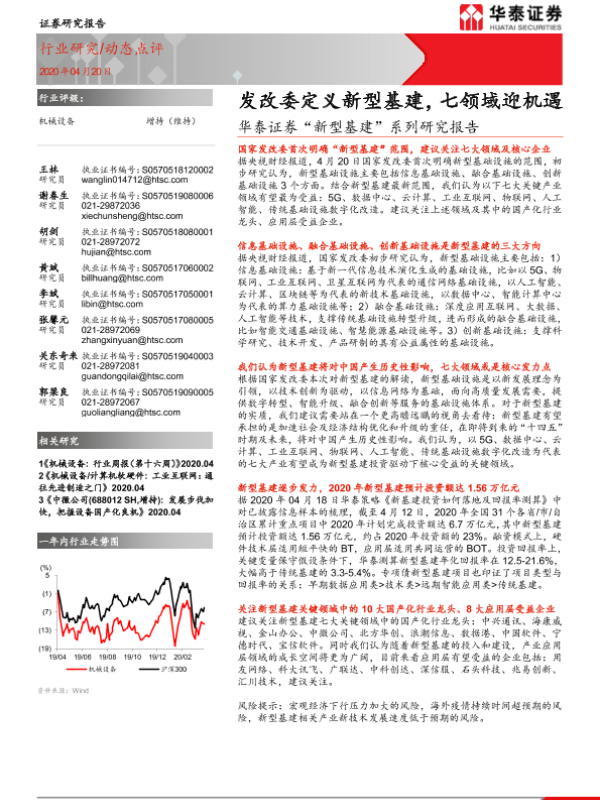 【华泰证券】【20200420】机械设备:“新型基建”系列研究报告-发改委定义新型基建,七领域迎机遇-3页 行业研究