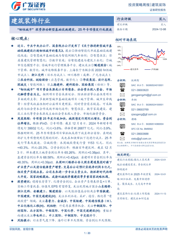 【广发证券】【20241208】建筑装饰行业投资策略周报:“韧性城市”投资推动新型基础设施建设-20页 行业研究