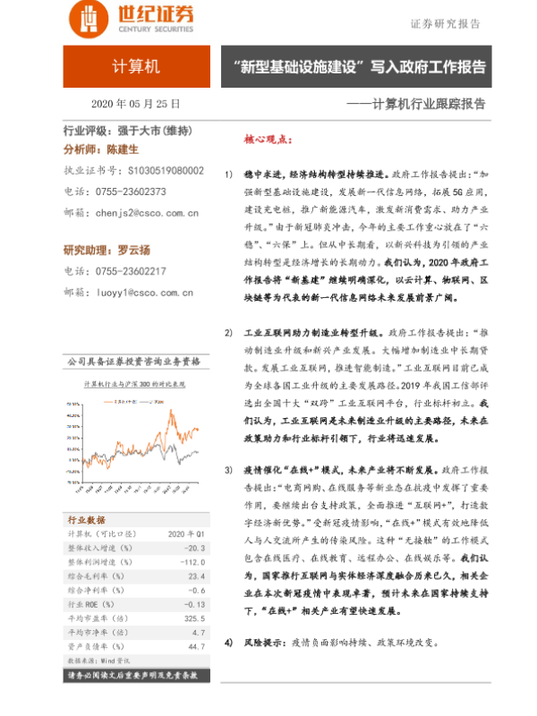【世纪证券】【20200525】“新型基础设施建设”写入政府工作报告-2页 行业研究