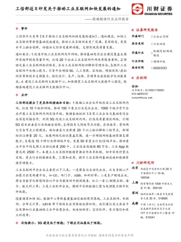 【川财证券】【20200323】关于推动工业互联网加快发展的通知-2页 证券期货研究报告