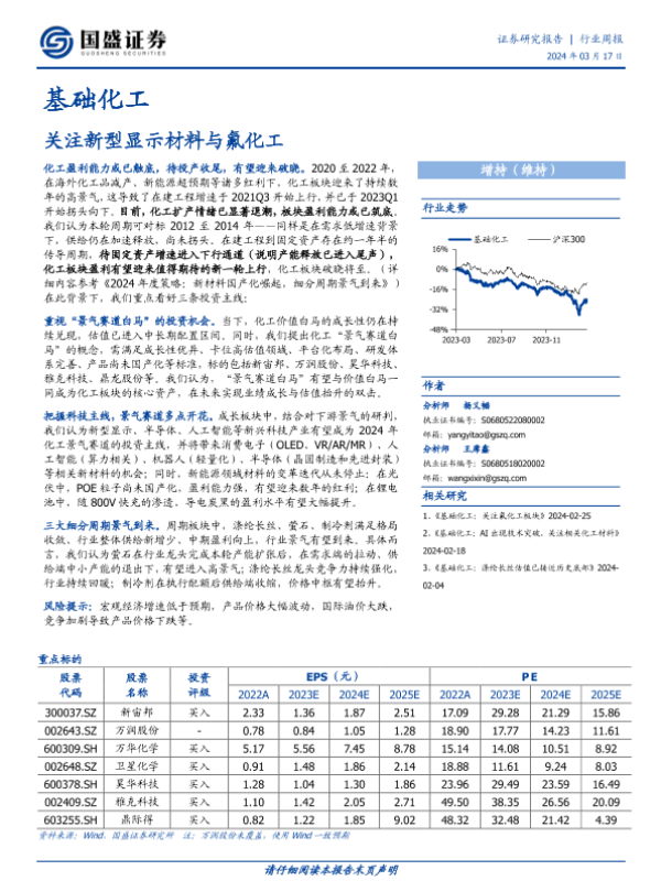 【国盛证券】【20240317】20240317-国盛证券-基础化工行业周报:关注新型显示材料与氟化工-10页 行业研究