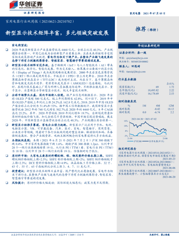 【华创证券】【20210705】家用电器行业双周报:新型显示技术矩阵丰富,多元领域突破发展-32页 行业研究
