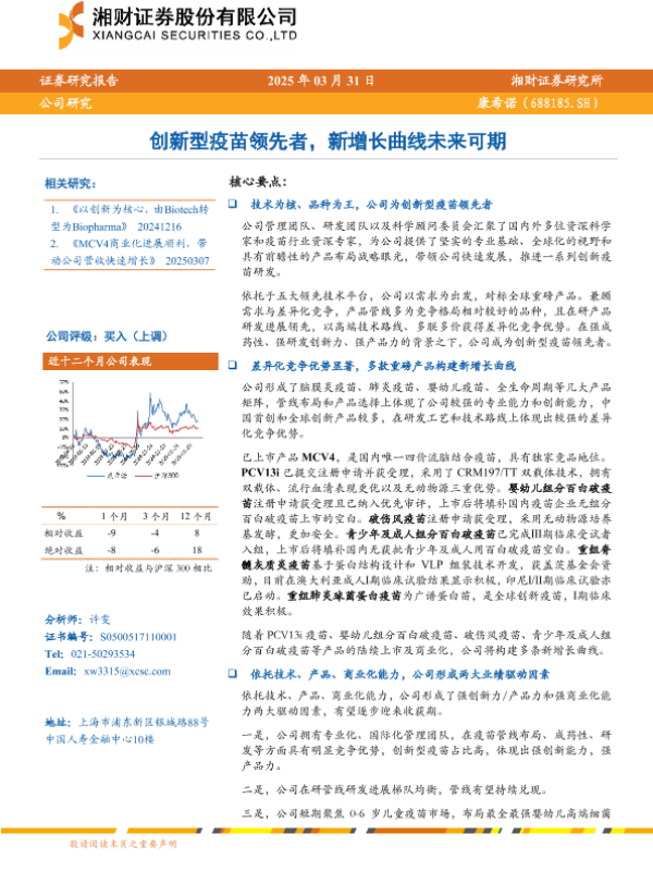 【湘财证券】【20250331】康希诺(688185)创新型疫苗领先者,新增长曲线未来可期-33页 证券期货研究报告