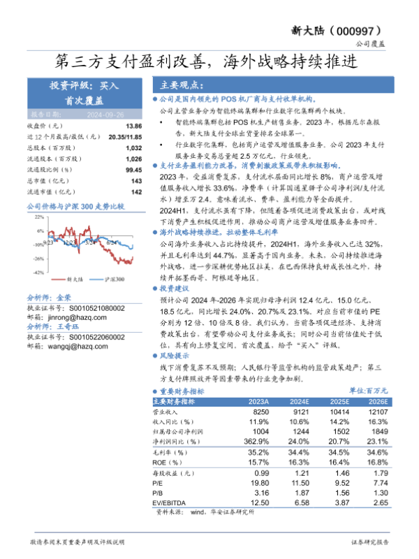 【华安证券】【20240926】新大陆(000997)第三方支付盈利改善,海外战略持续推进-21页 行业研究