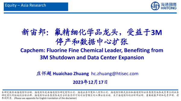 【海通国际】【20231217】新宙邦:氟精细化学品龙头,受益于3M停产和数据中心扩张-96页 行业研究