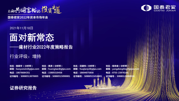 【国泰君安证券】【20211118】建材行业2022年度策略报告:面对新常态-76页 行业研究