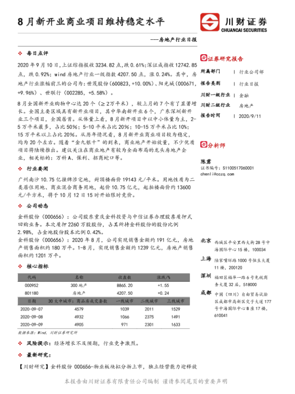 【川财证券】【20200911】8月新开业商业项目维持稳定水平-3页 证券期货研究报告