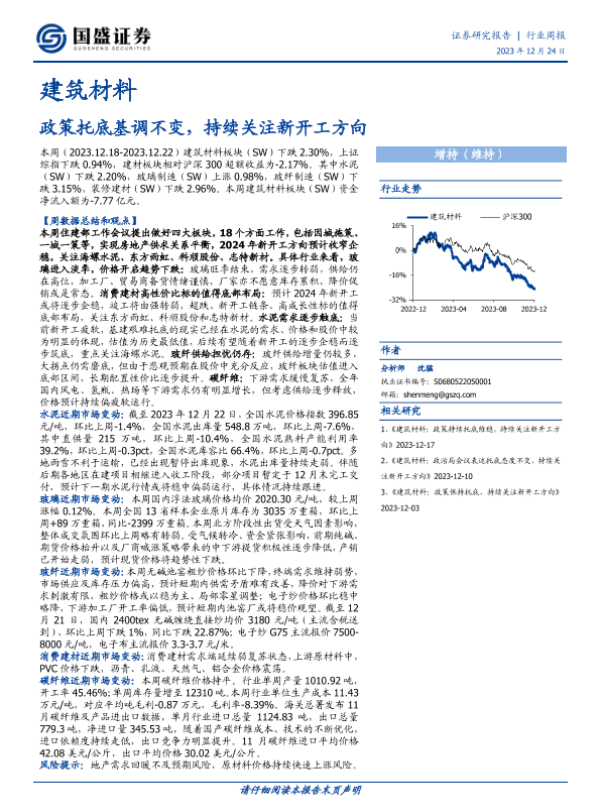 【国盛证券】【20231217】建筑材料行业周报:政策持续托底维稳,持续关注新开工方向-17页 行业研究
