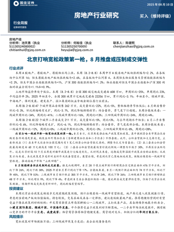 【国金证券】【20250810】北京打响宽松政策第一枪,8月推盘或压制成交弹性-19页 证券期货研究报告
