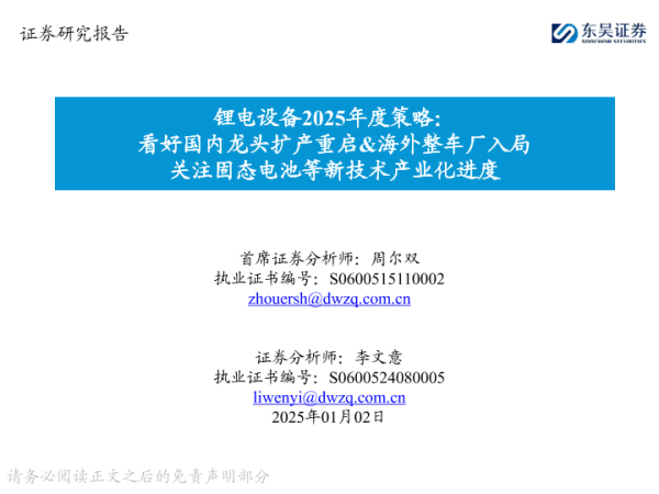 【东吴证券】【20250102】锂电设备2025年度策略:看好国内龙头扩产重启&海外整车厂入局 关注固态电池等新技术产业化进度-83页 行业研究