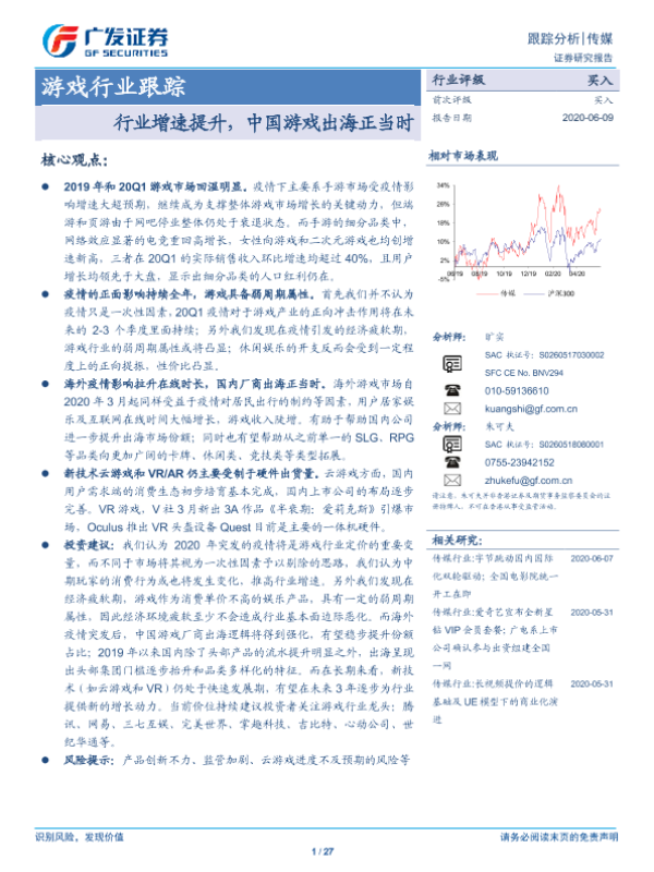 【广发证券】【20200609】游戏行业跟踪:行业增速提升,中国游戏出海正当时-27页 行业研究