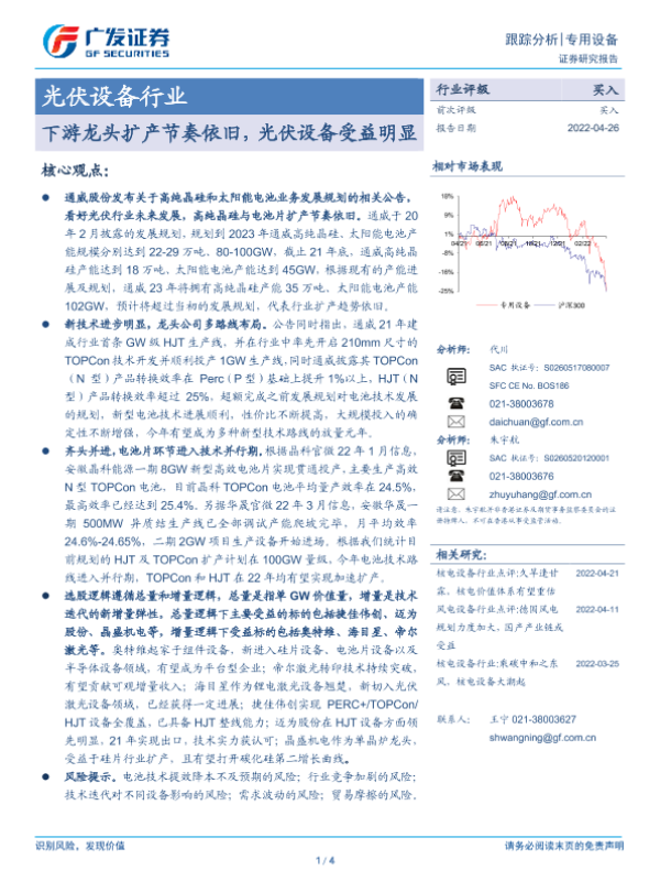 【广发证券】【20220426】光伏设备行业:下游龙头扩产节奏依旧,光伏设备受益明显-4页 行业研究