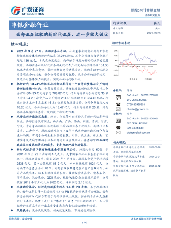 【广发证券】【20210928】西部证券拟收购新时代证券,进一步做大做优-4页 行业研究