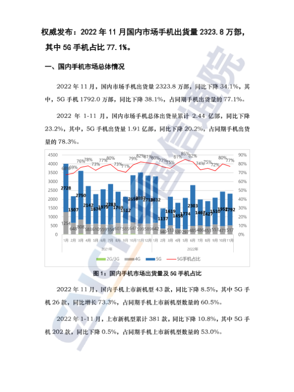 【中国信通院】【20230106】2022年11月国内手机市场运行分析报告-3页 市场调研