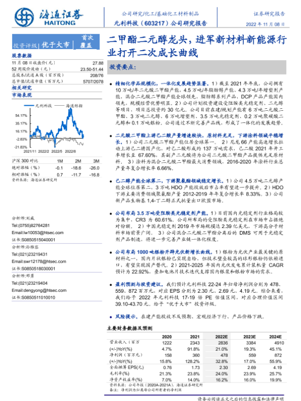 【海通证券】【20221108】元利科技-603217.SH-二甲酯二元醇龙头,进军新材料新能源行业打开二次成长曲线-29页 行业研究