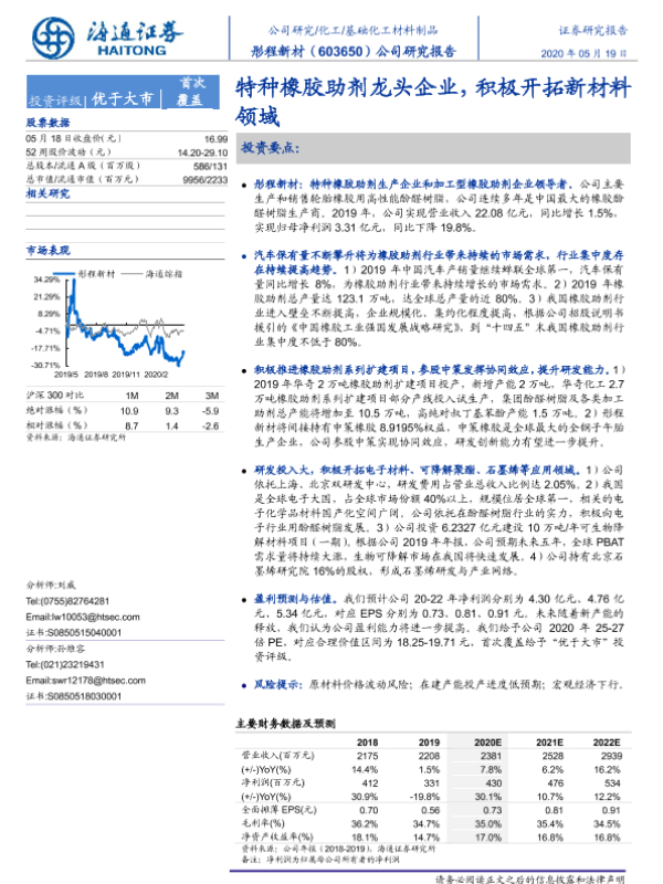 【海通证券】【20200519】彤程新材:特种橡胶助剂龙头企业,积极开拓新材料领域-23页 行业研究
