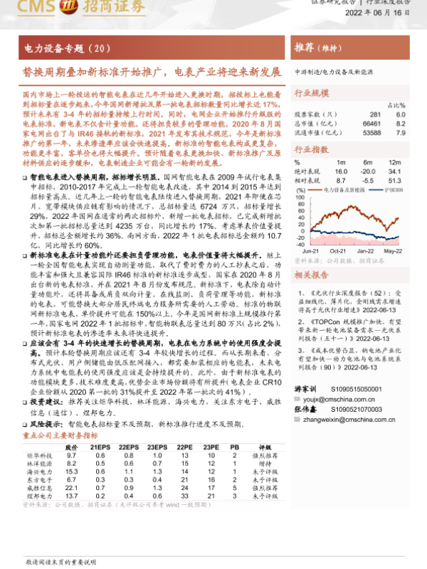 【海通证券】【20220616】电力设备行业专题(20):替换周期叠加新标准开始推广,电表产业将迎来新发展-18页 行业研究