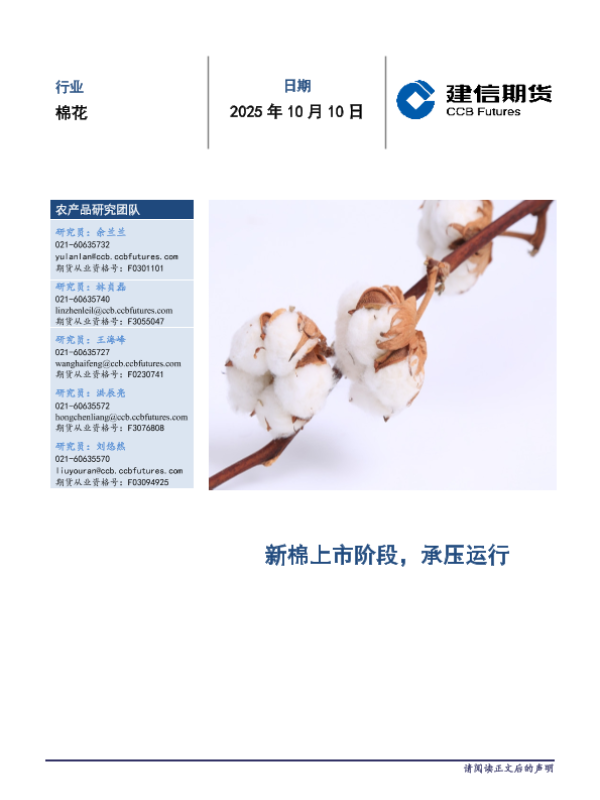 【建信期货研究发展部】【202510】新棉上市阶段,承压运行-13页 证券期货研究报告