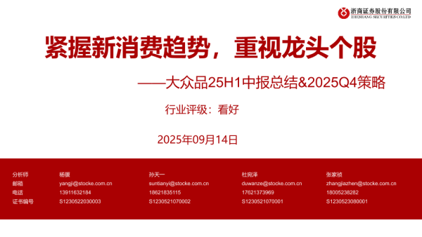 【浙商证券】【202509】紧握新消费趋势,重视龙头个股——大众品25H1中报总结&2025Q4策略-31页 证券期货研究报告