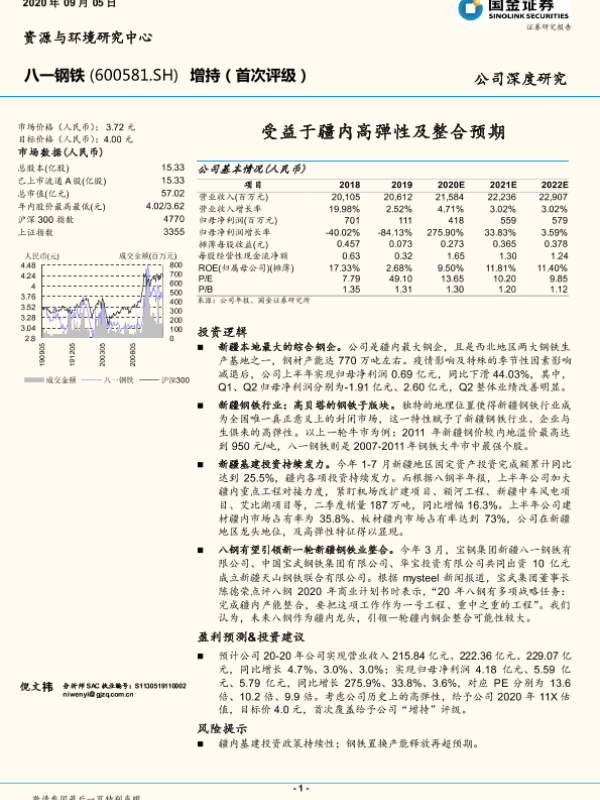 【国金证券】【20200905】八一钢铁-600581.SH-受益于疆内高弹性及整合预期-16页 行业研究