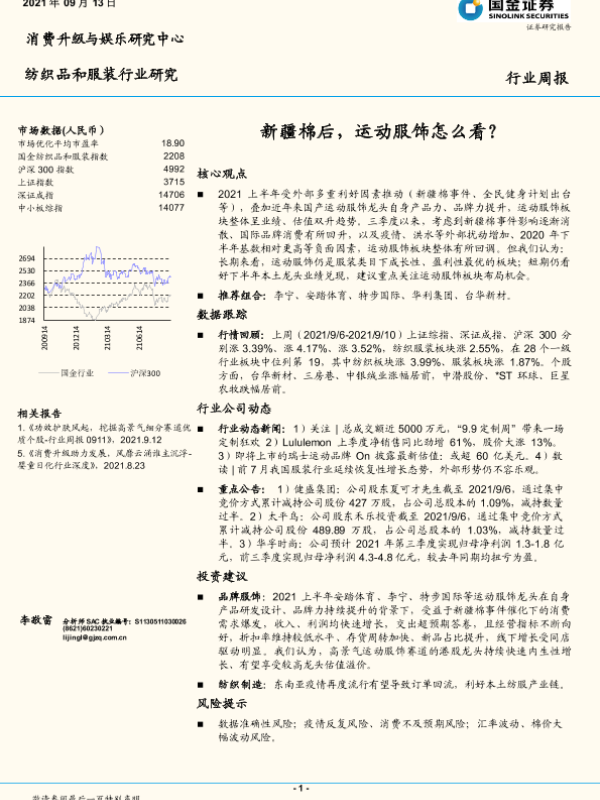 【国金证券】【20210913】20210913-国金证券-纺织品和服装行业研究:新疆棉后,运动服饰怎么看?-15页 行业研究