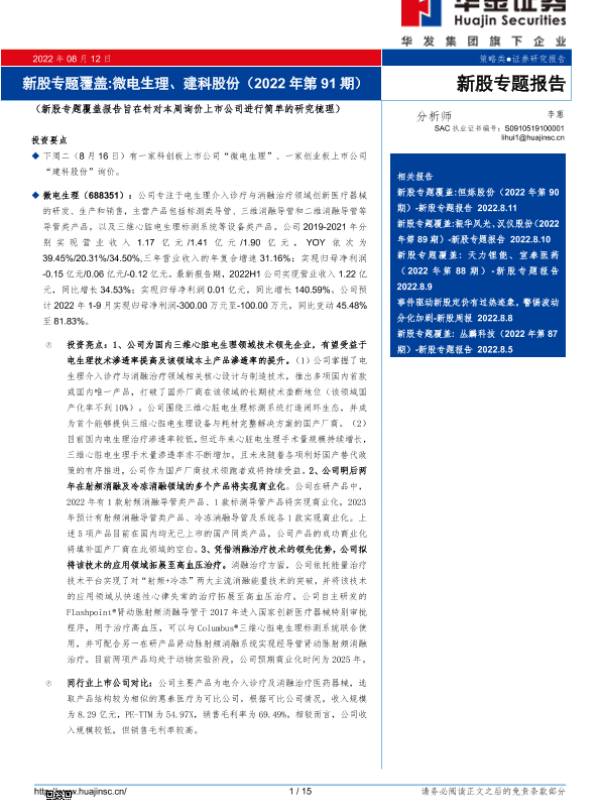【华金证券】【20220812】新股专题覆盖:微电生理、建科股份(2022年第91期)-15页 行业研究