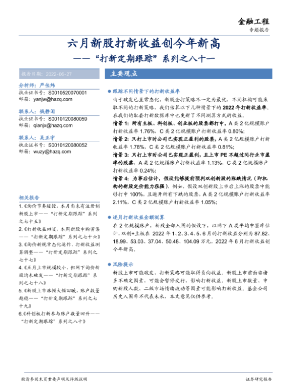 【华安证券】【20220627】“打新定期跟踪”系列之八十一:六月新股打新收益创今年新高-20页 行业研究