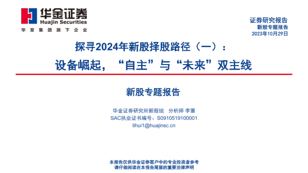 【华金证券】【20231029】探寻2024年新股择股路径(一):设备崛起,“自主”与“未来”双主线-43页 行业研究