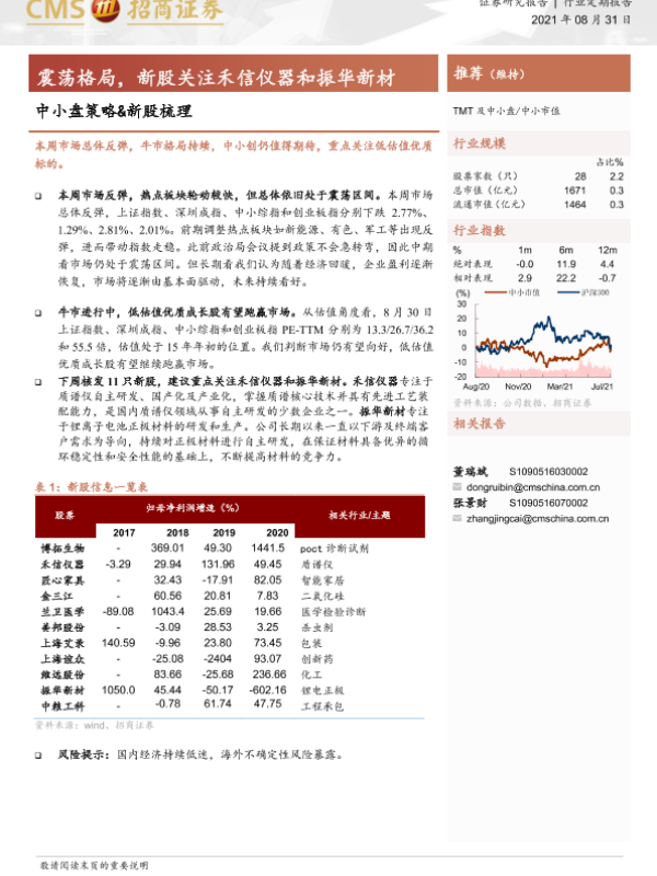 【海通证券】【20210831】中小盘策略&新股梳理:震荡格局,新股关注禾信仪器和振华新材-17页 行业研究