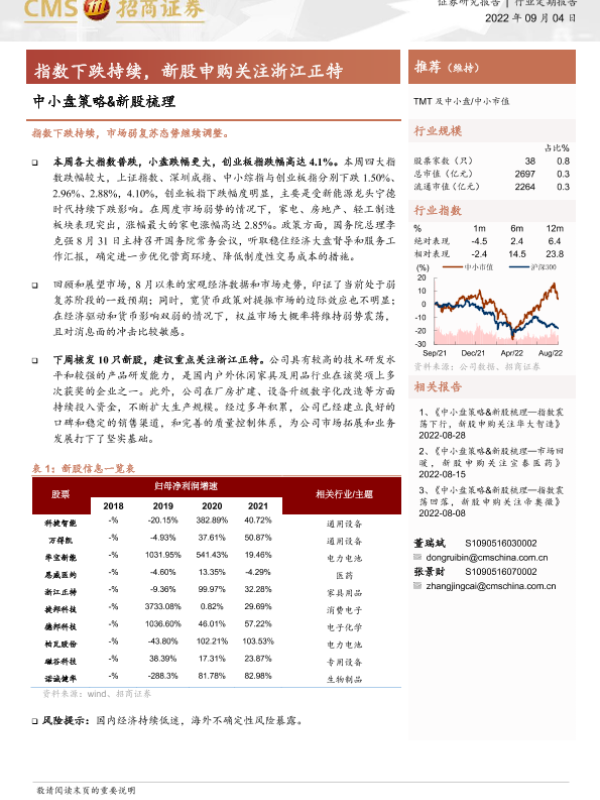 【海通证券】【20220904】中小盘策略&新股梳理-22页 证券期货研究报告