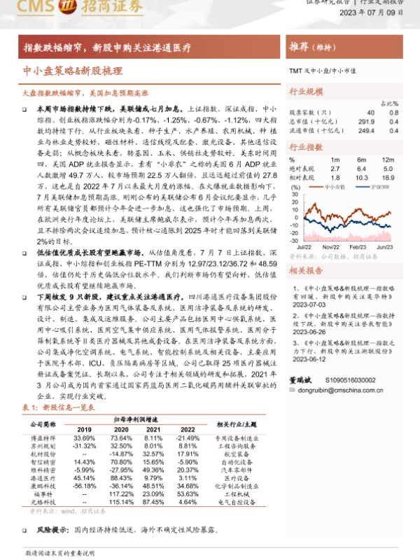 【海通证券】【20230709】中小盘策略&新股梳理:指数跌幅缩窄-17页 证券期货研究报告