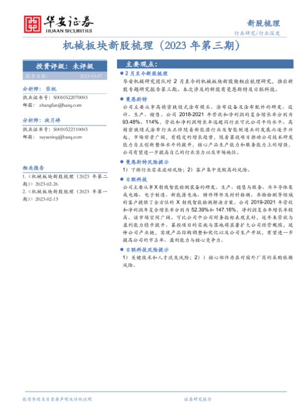 【华安证券】【20230307】机械板块新股梳理(2023年第三期)-13页 行业研究