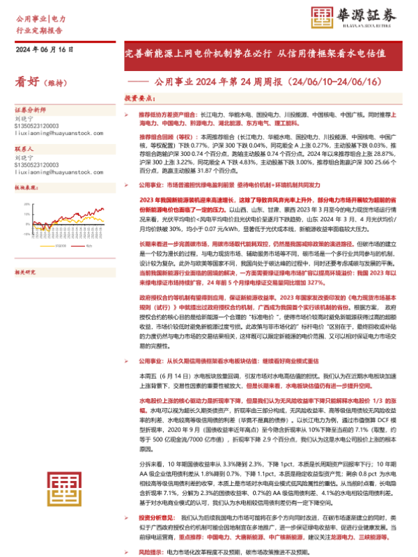 【华源证券】【20240616】完善新能源上网电价机制势在必行 从信用债框架看水电估值-11页 行业研究