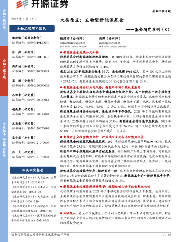 【开源证券】【20220122】基金研究系列(8):大类盘点,主动型新能源基金-15页 行业研究