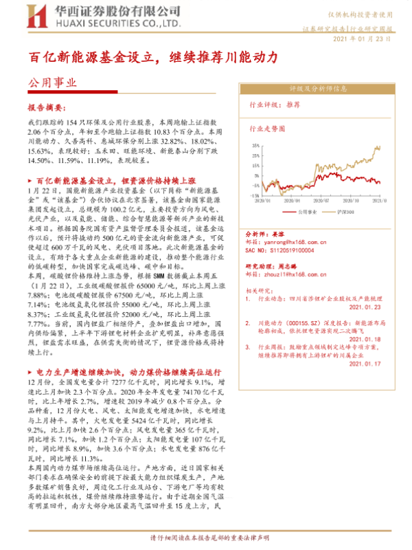 【华西证券】【20210123】公用事业行业研究周报:百亿新能源基金设立,继续推荐川能动力-17页 行业研究