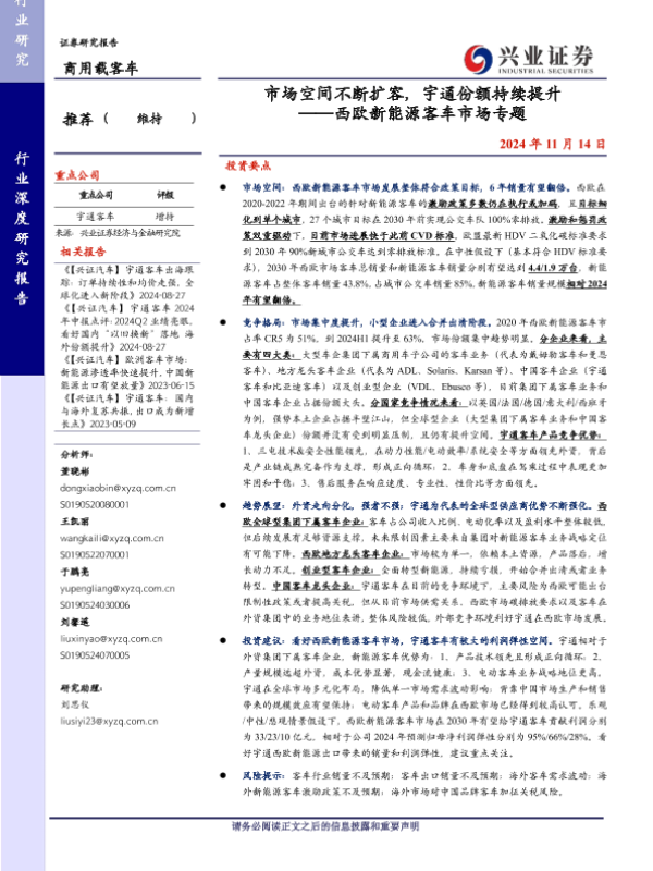 【兴业证券】【20241114】市场空间不断扩容,宇通份额持续提升 ——西欧新能源客车市场专题-24页 行业研究